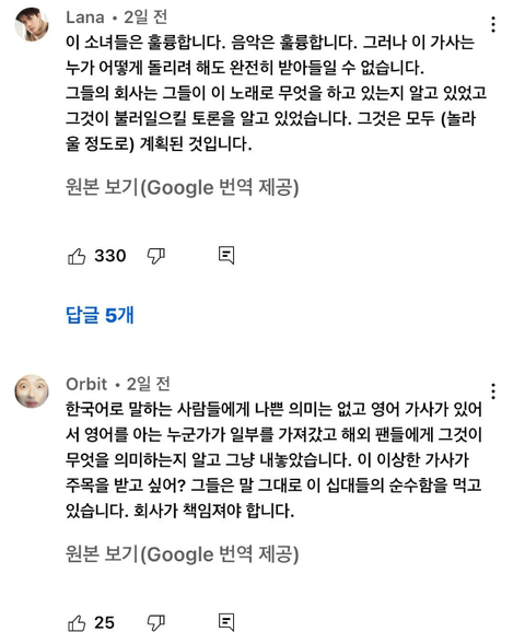 유튜브 영어 댓글 크롬 번역기 돌린 거 ↓