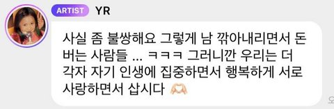 댓글들 병 걸린 거 같네ㅋㅋ 예리는 너네 불쌍하게 밖에 안 여김,, 아무리 시간 낭비하며 날뛰어 봤자 타격 1도 없음!