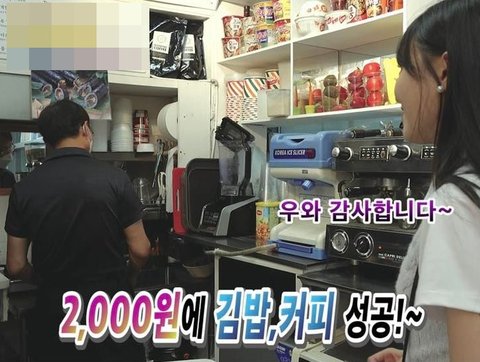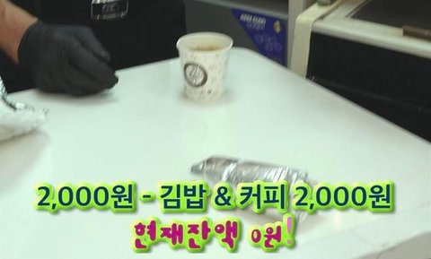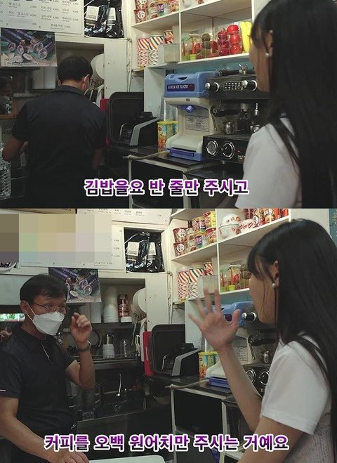 김밥 한줄 3천원인데 반줄 + 커피 500원 어치