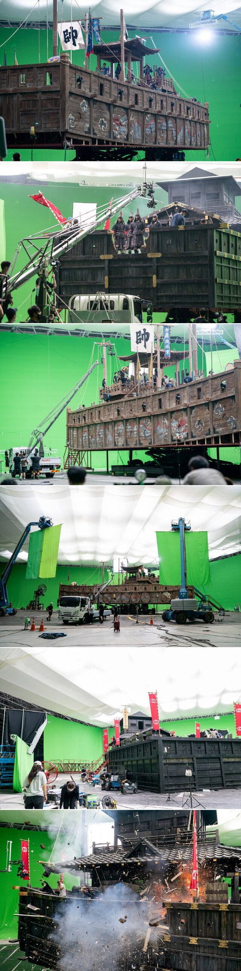 '한산'의 투톱은 이순신과 해전이다. 인물은 배우들 몫이지만 해전은 순전히 기술과 인력이다. '한산'은 '명량' 스탭들이 참여했다. 여수에 사극용 오픈 세트를 지었고 평창동계올림픽이 열렸던 강릉 스피드스케이팅장 안에 배세트를 만들었다.