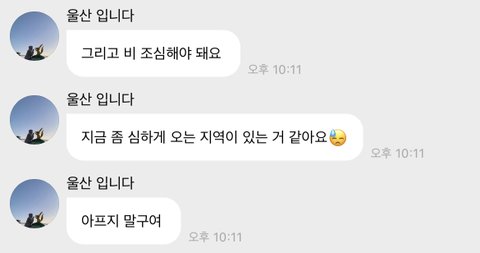 다행히 우리 지역은 비 멈췄는데 비 많이 오는 지역 조심해야해!!!! 그리구 울산 간 준표들두 올라올 때 조심히 올라와!!♡