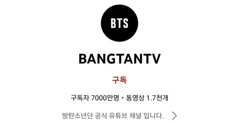 참고로 방탄티비에는 뮤비 안올라옴 찐팬 구독자 수가 7천만임 뮤비올라오는계정 합치면 1억4천만