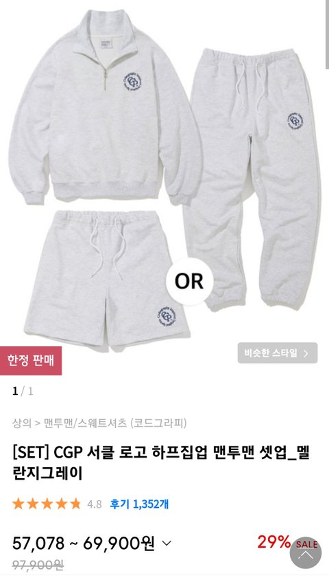 2. 코드그라피 서클 로고 하프집업 맨투맨 셋업 멜란지그레이 (사이즈 s)