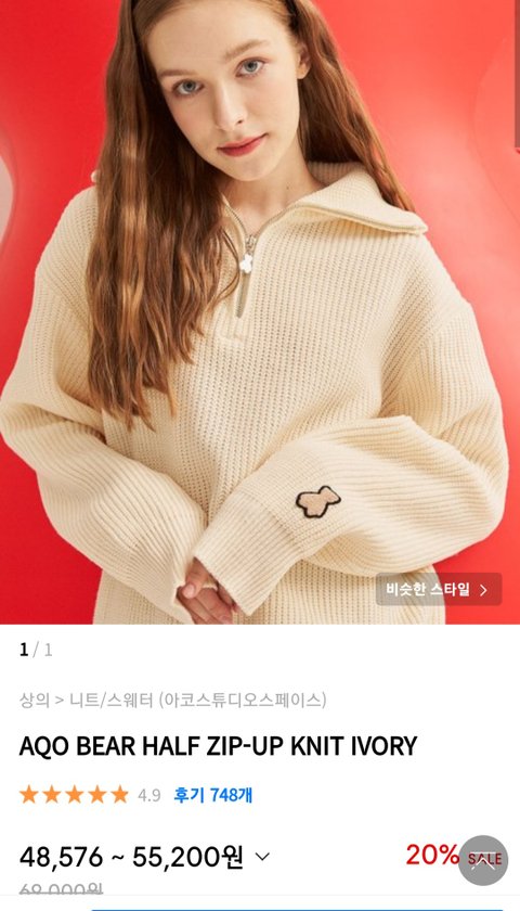 3. 아코스튜디오스페이스 아코 베어 하프 집업 니트 아이보리 (사이즈 2>1)