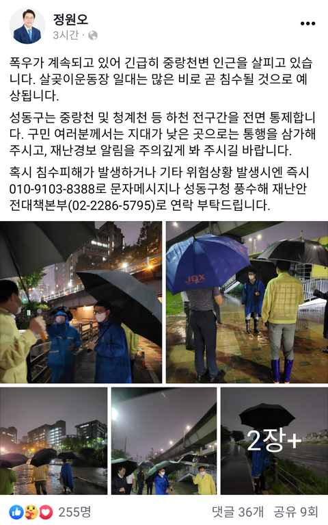 오늘 폭우를 대하는 두 정치인의 자세