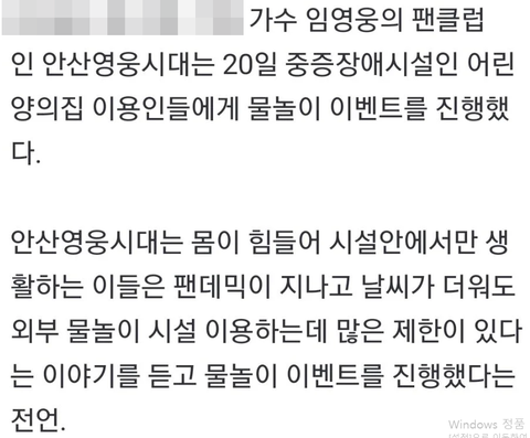전국(해외팬모임에서도) 팬모임을 통해 다양한 기부처에 다양한 방식으로 기부