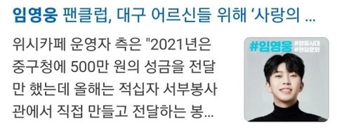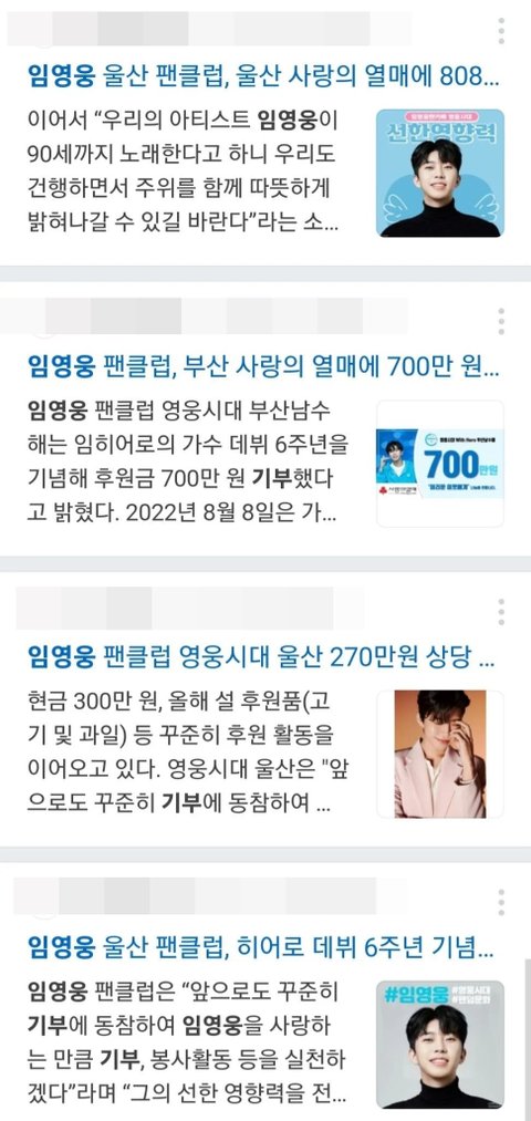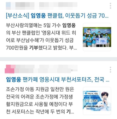 (무명시절부터 꾸준히 기부를 해 온 임영웅을 본받아 팬들도 기부활동을 하기 시작함)