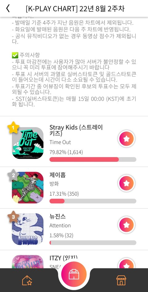 스타플레이 어플에서 차트투표 열었는데 후보로 있엉