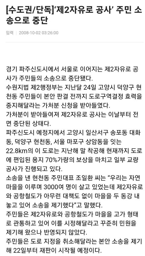 실제로는 마을 밀어버리고 도로 뚫었다고 함