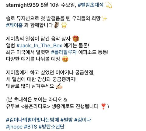 호비한테 하고 싶은 얘기나 궁금한 거 있는 사람 별밤 인별 가봐