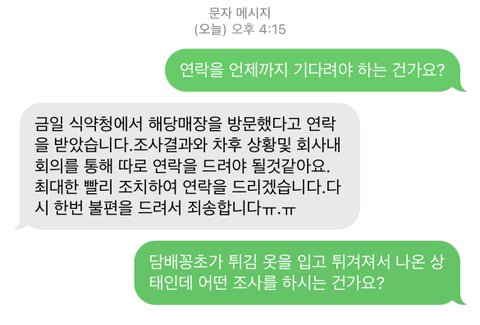 다음날 본사에 연락하니 그 지점 사장님들 담배 안 피신다고 오히려 당당하게 말씀하시더리고요