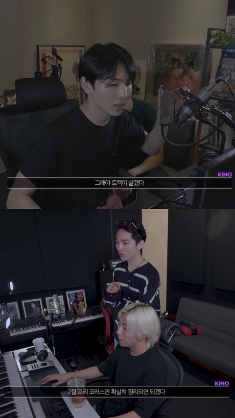 아이디어 내는 것부터 잘 안 풀려서 같은 멤버랑 상의해서 해결하고 같이 작업한 작곡가분과 마무리 작업까지 하는걸 다 보여줌