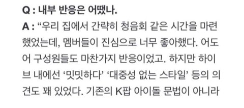 뉴진스 성공 기념으로 인터뷰했는데