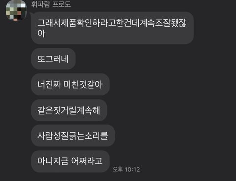 매번 싸울때마다 "이딴식,저딴식,쳐,돌았네,미쳤네,_,못알아쳐먹네" 등등...