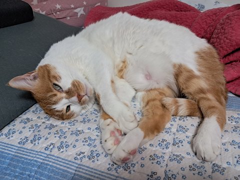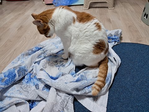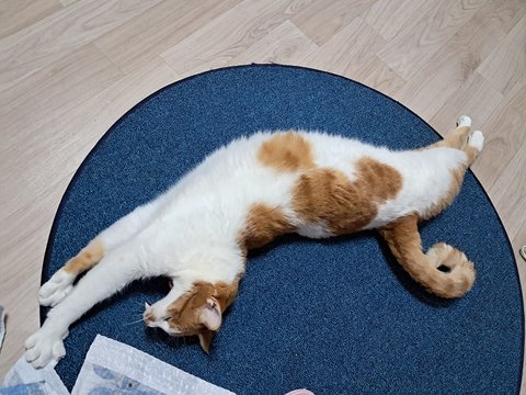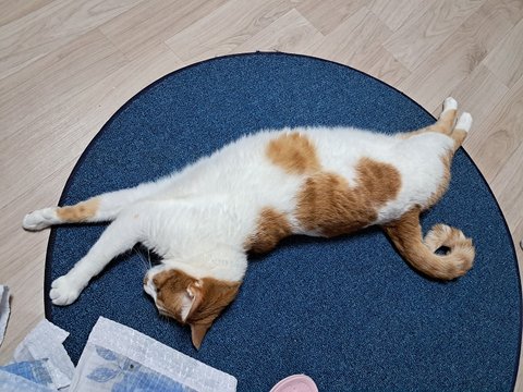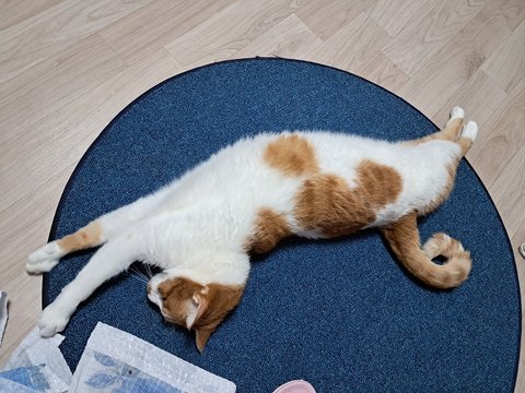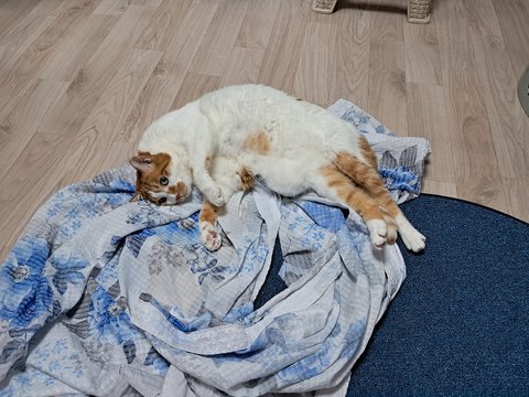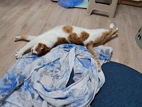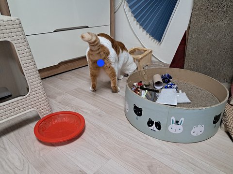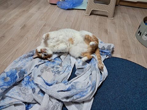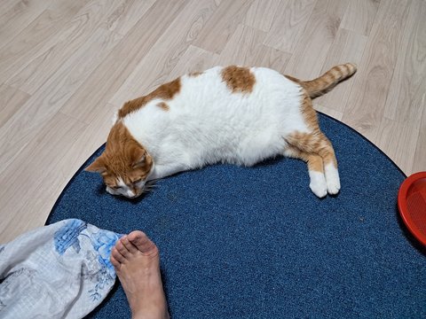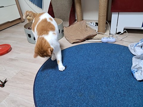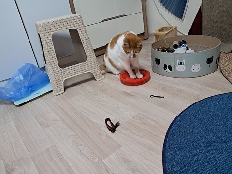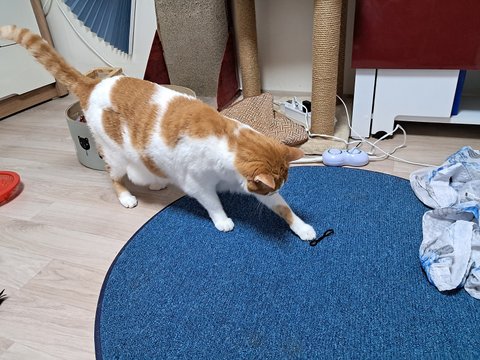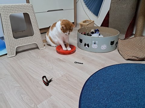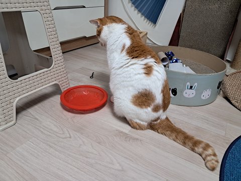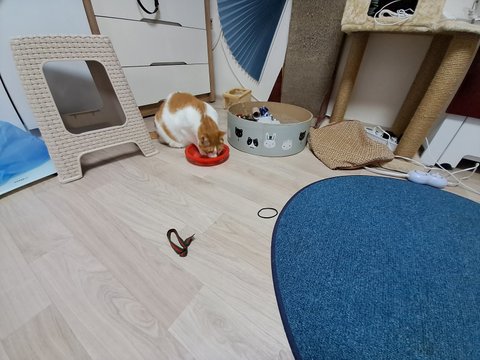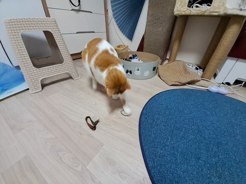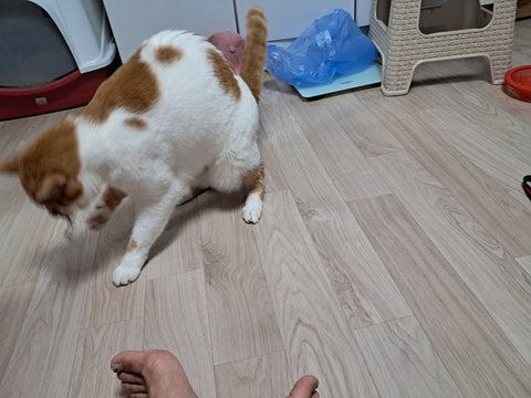 신나게 놀더니 간식달라고 집사발에 박치기도 하고 부비부비하고 있음.
