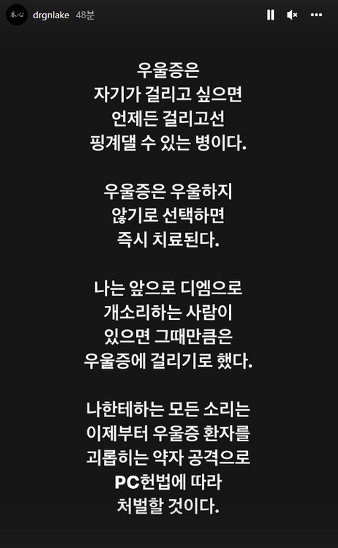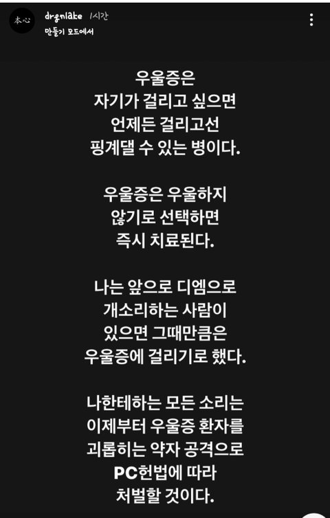 우울증은 자기가 걸리고 싶어서 걸리고 핑계대는 병,