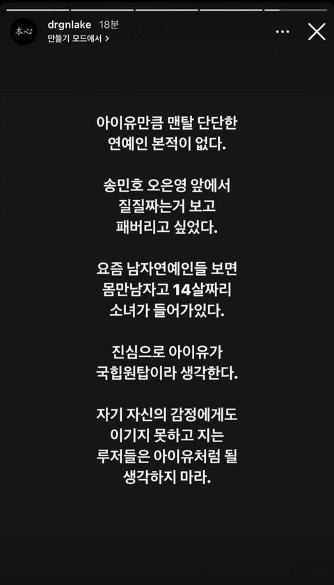 게다가 뜬금없이 아이유와 비교질,