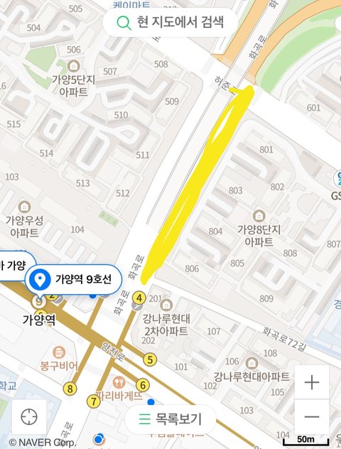 사진의 가양역 4번출구에서 가양대교 방면으로