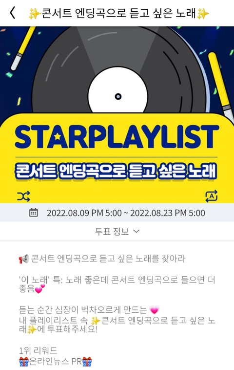 콘서트 엔딩 곡으로 듣고 싶은 노래 주제로 투표중인데 너무 찰떡인듯