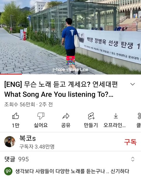 이 노래 믹테라 대중들 중에서 모르는 사람 많을텐데 유튜브 보다가 홉이 믹테 듣고 있는 남자 봄 참고로 홉이 노래 듣고 있으셨던 남자분 연세대학교 교환학생이더라