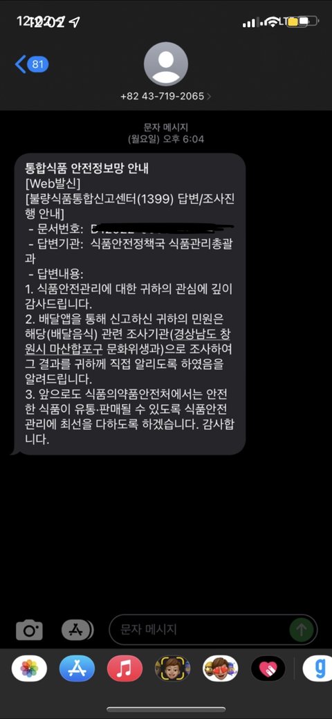 제가 받은 문자는 검사를 시행하였다고만 안내 되어있고 자세한 내용은 없습니다. 그래서 참 어이가 없네요… 신고자인 나는 모르는 걸… 기자님은 알고 쓰셨으니… 참 정말 이런 일은 다신 없었으면 좋겠네요… 참 대처가 좋았으면 금방 끝났을 일을 이렇게 많은 시간을 끌었다는 게 시간이 너무 아깝고 속상할 뿐이네요… 저는 이제 배달 음식 못 시켜 먹겠네요…