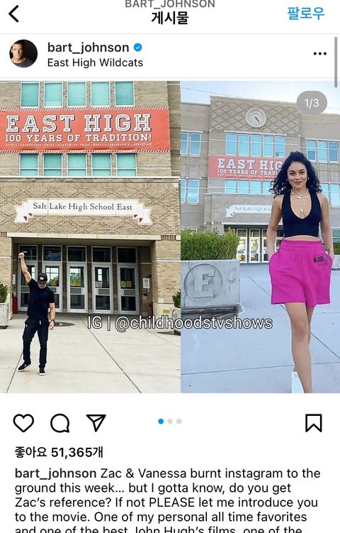 근데 남주인 잭에프론이 7월에 영화 배경이였던 이스트 고등학교에서 사진찍어서 올렸는데