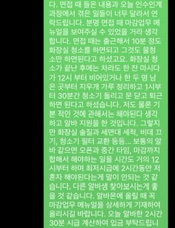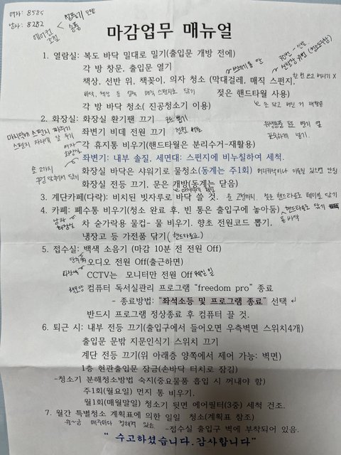 들어가자마자 마감업무 메뉴얼이라면서 해야되는 일들이 적힌 종이와 펜을 건냈음