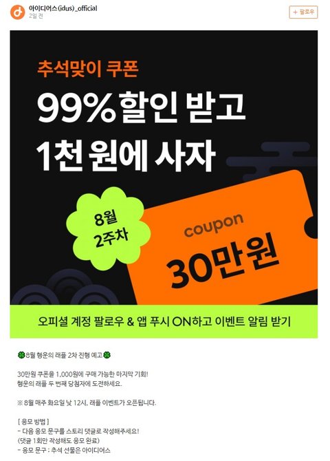 아이디어스에서 추석맞이 이벤트로 30만원 쿠폰