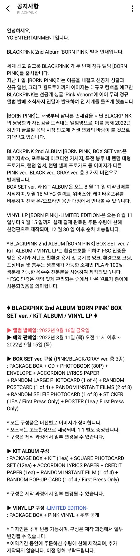 블랙핑크 정규 2집 앨범 사양 정보
