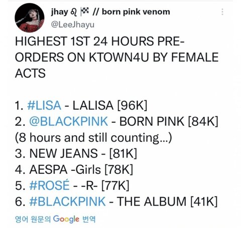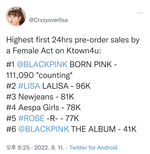 9시간만에 이정도 그것도 케타에서만 24시간까지 쭉 카운팅하면... 걍 개넘사벽아니냐 2년 컴백을 안했는데 더앨범보다 높아 ㅋㅋㅋ