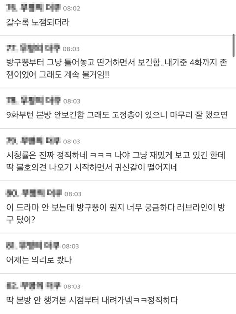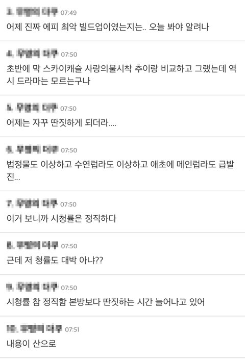 다만 시청률이 최고시청률 대비 3%이상 빠지긴 함 (수도권)
