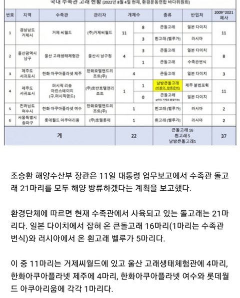 나 울산 살아서 어릴때 고래박물관 자주갔는데 수족관 크기보고 개충격먹음 ..ㅠㅠ 지금이라도 방류하기로 해서 다행이당