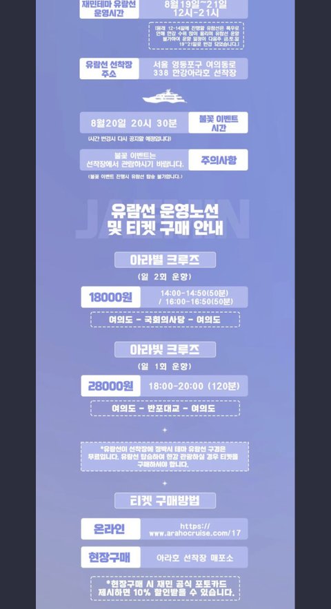 한강 유람선 불꽃놀이 포카 보야주면 할인되는거