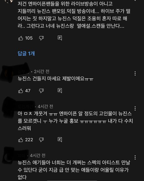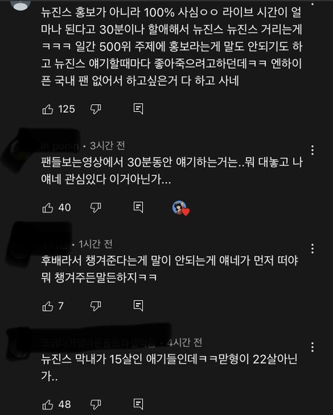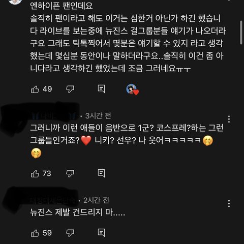 엔하이픈 제이 니키 선우 이 세명이 브이앱했는데 30분동안 뉴진스 얘기만 했다던데 ㄹㅇ임? 팬들이 다른 얘기하자고 했는데도 뉴진스 댓글만 골라읽고 같이 틱톡 찍은 얘기하면서 웃고 떠들고 뉴진스 춤추고 그랬다던데 팬들 많이 화나보이는데 탈주도 많이하고 ㄹㅇ찐팬은 폭로계정까지 만들어서 탈주했다고함