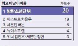실물 1위한 적도 있는데 방탄이라는 원탑 그룹이라서 오히려 더 욕 먹는 케이스야... 그룹이 적당히 망했거나 인기없으면 안티도 적을텐데ㅋㅋㅋㅋ 웃긴게 밖에서 더 유명한건 뷔인데 커뮤에서 욕먹는건 뷔밖에 없음 어제보고 느꼈는데 비추테러 당한거 뷔 한 명 뿐이었고 차은우랑 타멤버는 같은 방탄인데도 견제 덜 당하더라 방탄중에서도 뷔한테만 정병짓 하는거