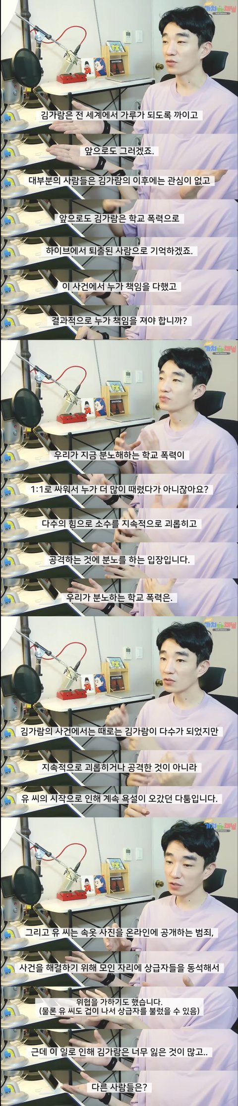 해외팬들이 김가람에 대해 올린 글을 보다가 이 유튜브를 봤고 가장 사건에 대해서 이성적이고 중립적인 시각에서 잘 설명하고 있다는 생각이 들어서 캡쳐로 구성해봤음
