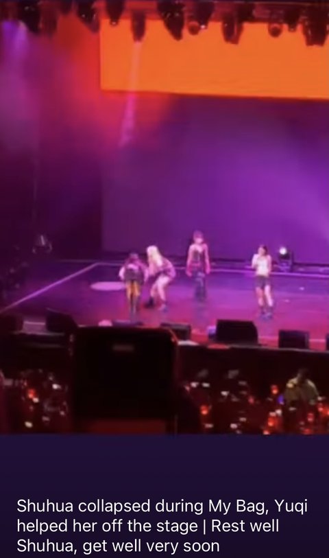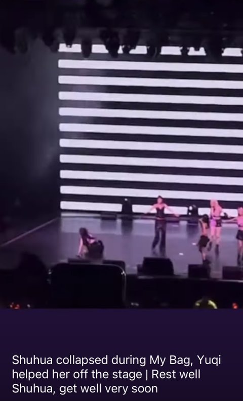 아이들 월투 도느라고 많이 피곤했나보다…일으켜 세워주는 우기도 대단하고 관객들 시선 끌려고 끝까지 무대하는 소연 민니 미연도 대단하다ㅠ