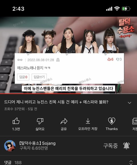쓰니야 니가 예리한테 매일 이런짓 할수록 니가 좋아하는 아이돌은 하는일마다 개망함 한마디로 저주받는다는 얘기임 예를 들어 니가 정치인 좋아하면 그 정치인 지지율 폭망하고 스포츠 선수를 좋아하면 그사람 욕받이에 이미지 개십창남