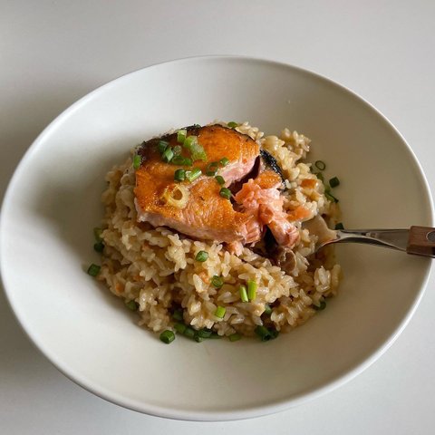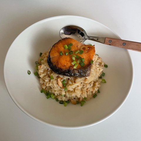 연어 스테이크를 구워 올린 버섯 리조또에요! 저 원래 버섯을 잘 먹지않는데 요즘은 버섯이 그렇게 맛있더라구요..
