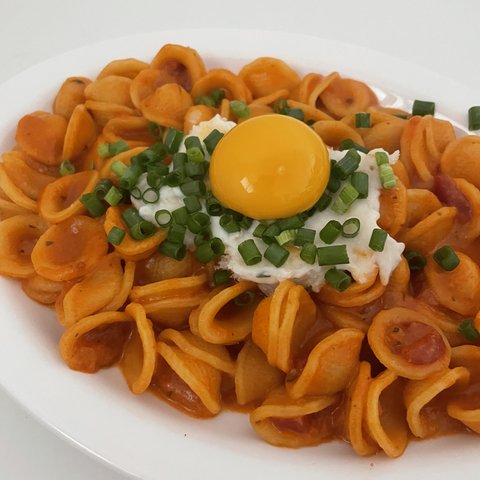 원래는 빵에 발라먹는 저만의 갈릭버터 프레쉬크림을 오르끼에떼 파스타에 올렸어요..!! 약간 알싸한 크림이랑 토마토 소스가 잘 어울려서, 다음에 크림을 만들때는 설탕을 조금 줄여 파스타용으로 따로 만드려구요!