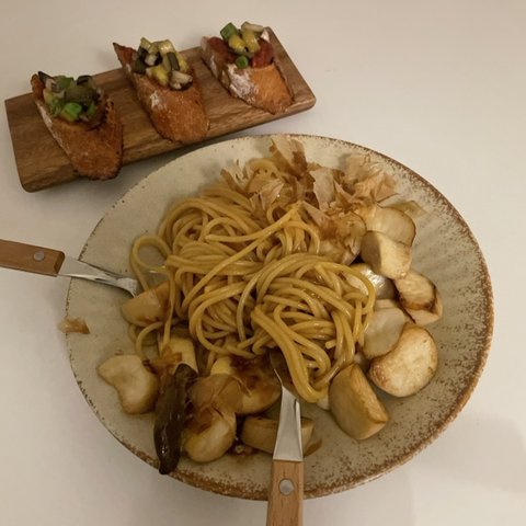 아까 나온 부르스께타 남은 재료들 재탕해서 쓰고 버섯 파스타도 해먹었어요!