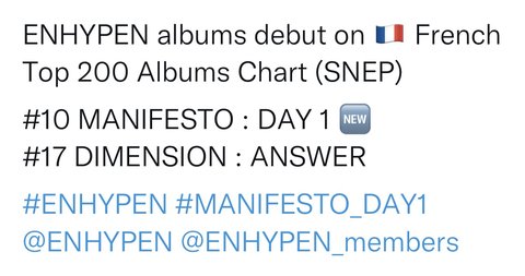 프랑스 앨범 차트도 10위ㅠㅠ