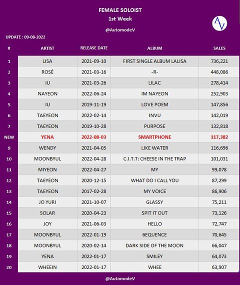 솔로로 두번째 컴백에 11만장.. 역대 여솔 8위 기록했음