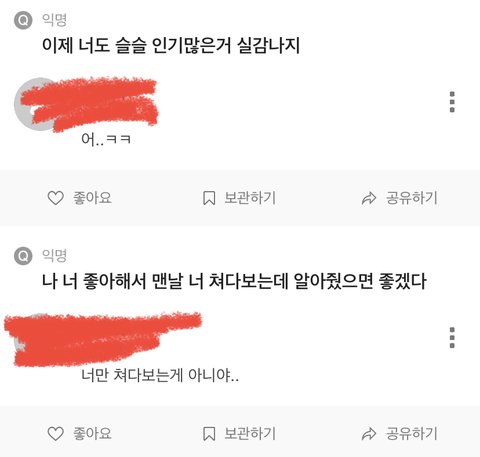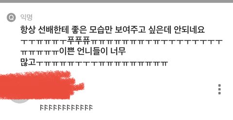 쟤네는 욕해도 되는데 나는 욕하지마 일단 더 가져오고 싶은데 이정도만 가져옴 맞춤법 틀리는 냔들도 조카 짜증나고 진심 쟤네가 나랑 또래가 맞나 진짜 궁금하고 맨날 선배!! 안녕하주무세요!! ㅇㅈㄹ하는 년은 그 순정만화에서 아무리 남주에게 박대당해도 포기하지않고 꿋꿋하게 노력해 남주 맘 얻어내는 여주 손민수하는것같아서 조카 짜증남 __