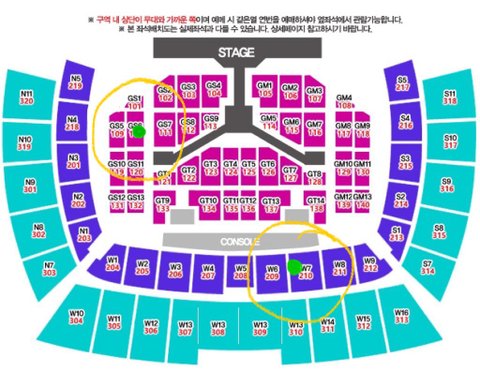 1인2매로 잡았는데 아직까지 양도를 못 해서 어느 자리로 내가 갈까?ㅜㅜ 연두색 표시한 곳이야