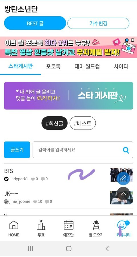 뉴스보기 미션 완료 후 아래 [커뮤니티] 클릭 한 후 2 방탄 글마다 클릭해서 [추천] 클릭 이걸 미션 완료 했다고 할 때까지 하면 돼