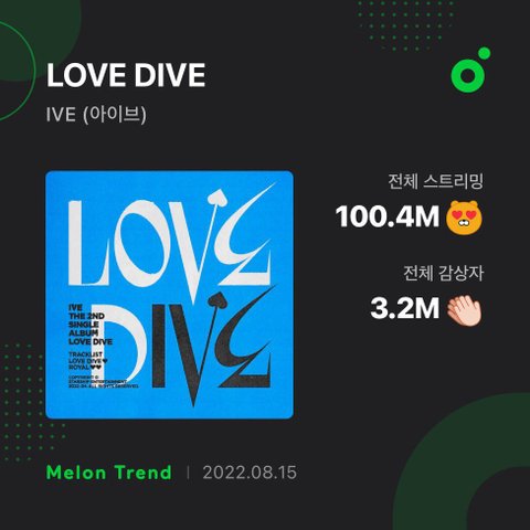 아이브 LOVE DIVE 멜론 1억 스트리밍 달성