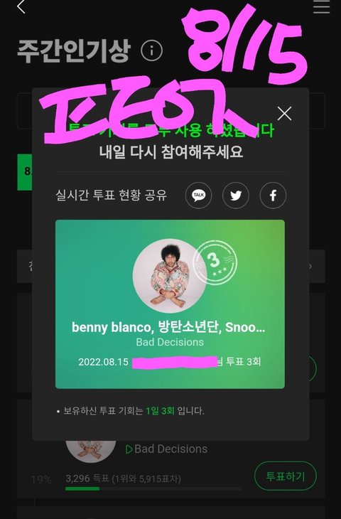 주간인기상 투표 챙기자