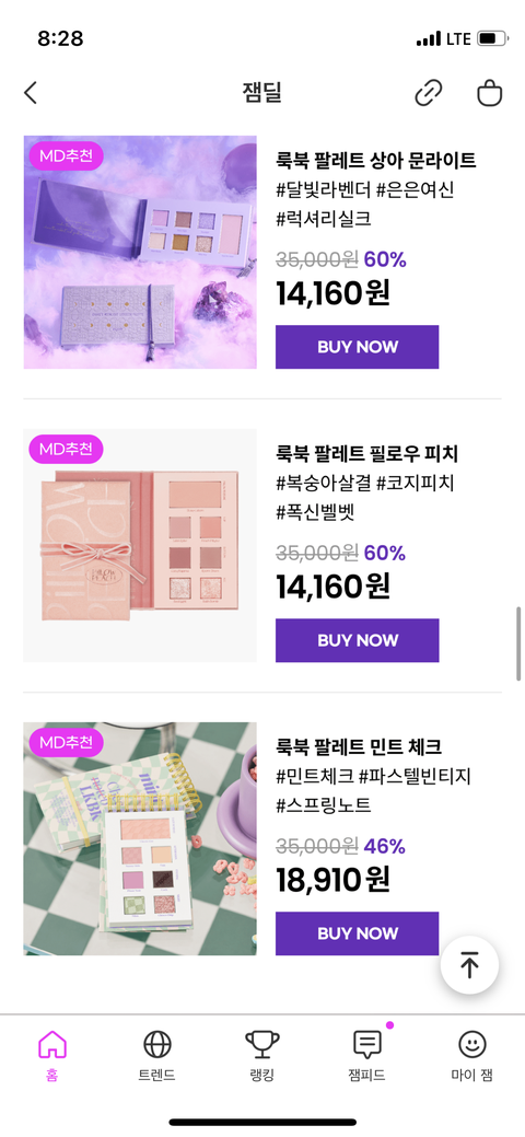 에스쁘아 룩북 팔레트 잼패이스에 특가로 파는거 사려구하는데 혹시 여기 3개중에 써본 사람있엉?? 추천좀!! 본인은 봄웜트루인데… 필로우피치가 딱봐도 웜톤찰떡인데 민트체크가 끌리네… 빈티지 스럽고 컬러 뮤트스러운게 요즘 화장 너낌이라.. 3ce 퓨처카인드 생각나기도하고…
