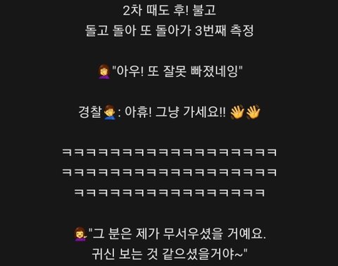 "음주 측정을 한 자리에서 3번을 한 적이 있어요"